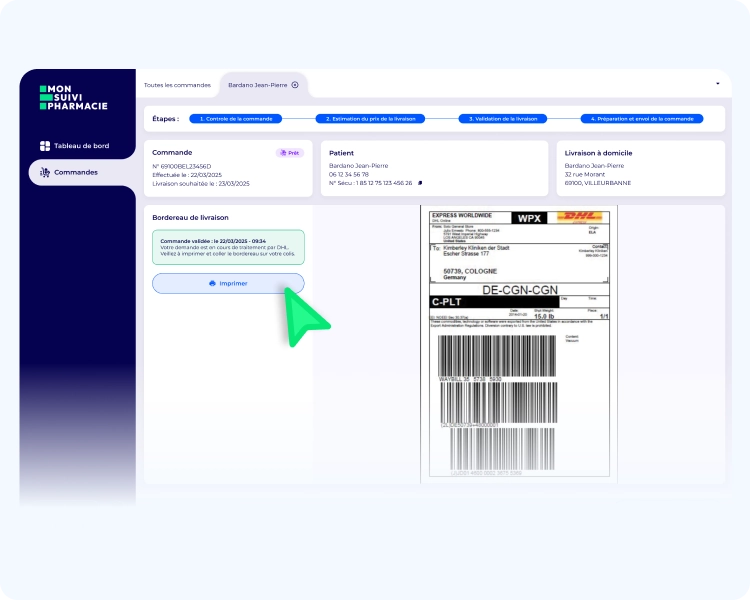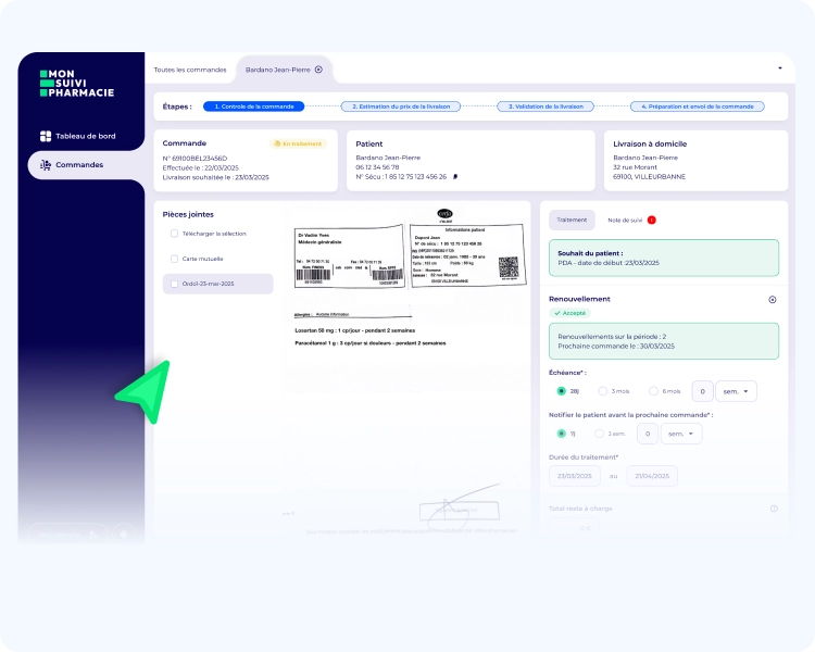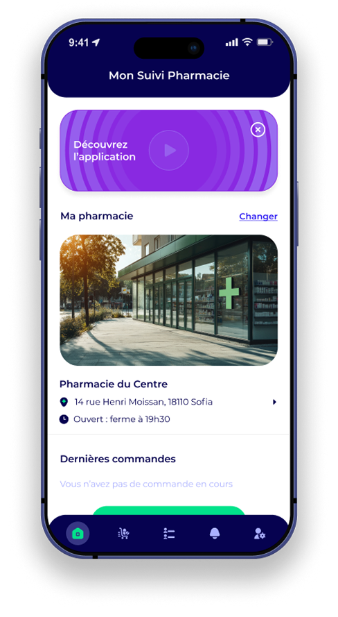 Lors de sa première connexion, le patient sélectionne votre officine comme pharmacie de référence. Ensuite, il pourra directement passer commande.