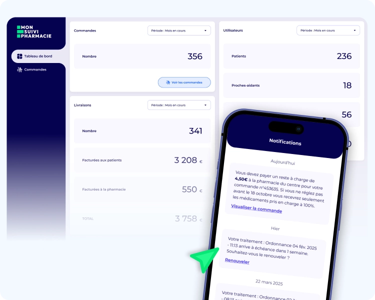 Mon Suivi Pharmacie est l’application tout-en-un qui connecte votre officine avec les infirmiers, les proches aidants et les patients.
